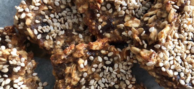 Simpele en snelle ontbijtkoekjes van banaan, vijgen en havermout. Het lastigste is het laten afkoelen voor het opeten....
